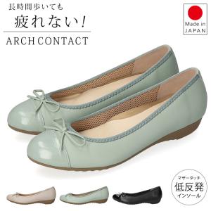 アーチコンタクト パンプス 痛くない 歩きやすい 疲れない ローヒール バレエシューズ ラウンドトゥ リボン 日本製 靴