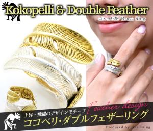 男女でおススメ♪ 内側ココペリ【金ハート 金銀ダブル フェザー リング】羽根フェザー リング フリーサイズリング約#9〜#23調節可能 シル
