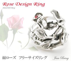 【レビュー投稿で10%ポイント還元】送料無料【巻きつく棘】薔薇ローズデザイン調節可能フリーサイズリング・ジルコニア◇シルバー925リ