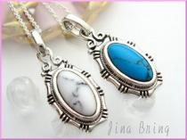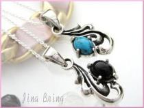 【レビュー投稿で10%ポイント還元】【送料無料】唐草デザイン・ターコイズ&オニキス◇ペアネックレス/svシルバー925 ペア カップル ペア