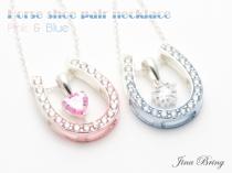 【レビュー投稿で10%ポイント還元】ペア価格【送料無料】ピンク&ブルー・幸運ホースシューハート・ペアネックレス■小豆チェーン2本付き