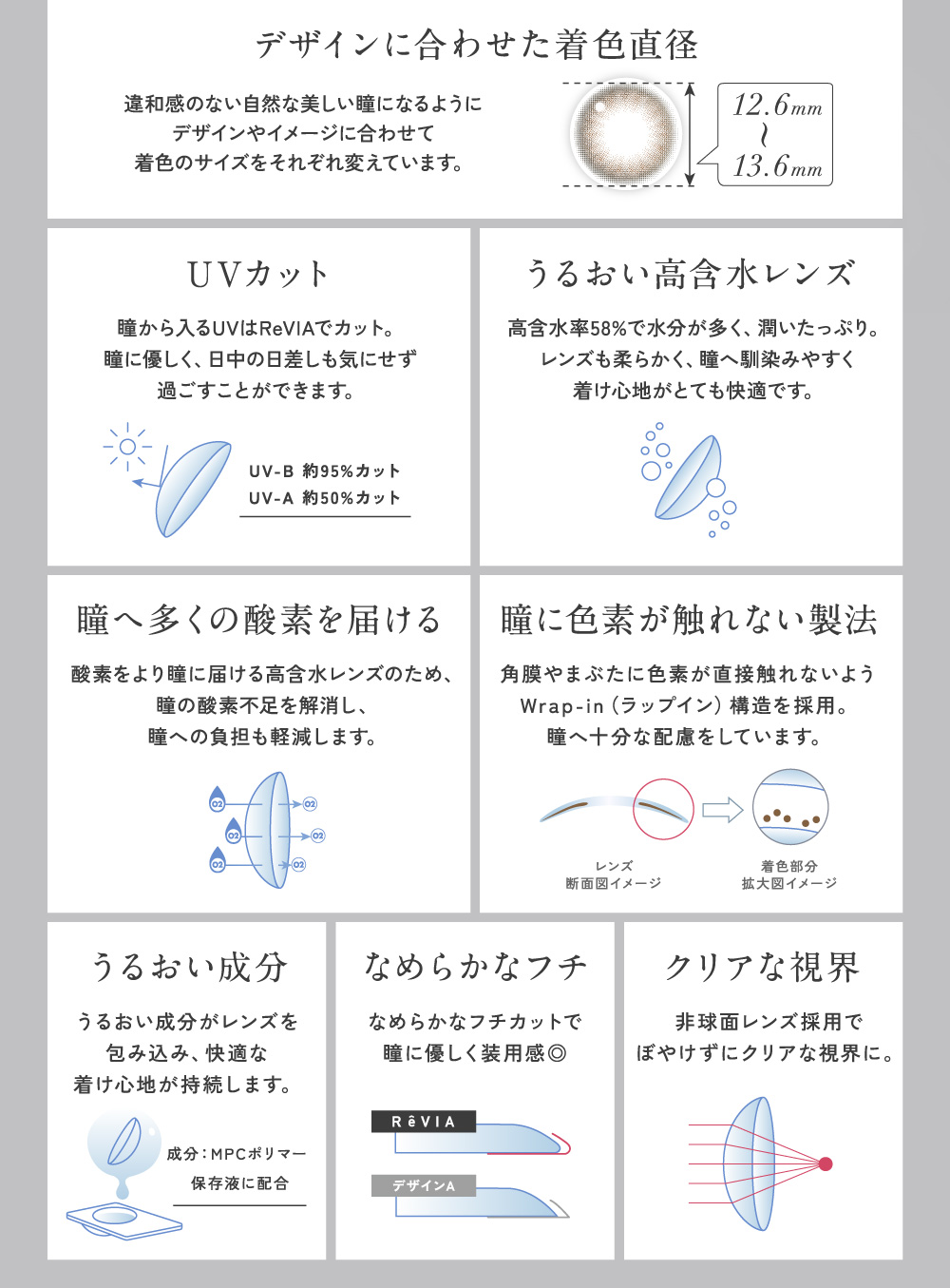 10周年キャンペーン開催中! ReVIA 1day(レヴィア ワンデー) DIA14.1 BC8.6 UV CUT MOISTURE 艶めく 透明感 新色 これがレヴィア ピュアグロー スティルレイ ヌイブラウン パッケージが新しくなりました! 年間ランキングNO.1多数受賞 LINE UP COLOR一覧 COLOR CHART COLOR 詳細はこちら CIRCLE一覧 COLOR CHART CIRCLE 詳細はこちら ReVIA 10th Anniversary ReVIA 1day COLOR/CIRCLE 2箱購入ごとに+1箱無料セットご購入でお好きな新色4枚プレゼント! COLOR ご購入はこちら CIRCLE ご購入はこちら さらに!ReVIAシリーズ組み合わせ自由!4箱以上ご購入でKIM CHAEWON of LE SSERAFIM オフショットステッカープレゼント! 詳細は各購入ページへ COLOR 理想の瞳が見つかる。印象UPレンズ 2箱購入ごとに+1箱無料 NEW COLOR COLOR:Still Ray Pure Glow ピュアグロー・Still Ray スティルレイ COLOR:Melty Bare Melty More メルティモア・Melty Bare メルティベア LusterGem ラスタージェム・Baby Vanilla ベイビーバニラ Stay me ステイミー・Hug me ハグミー Sheer Sable シアーセーブル・Pale Mirage ペールミラージュ Mist Iris ミストアイリス・PRIVATE03 プライベート03 COLOR:Melty Bare Dear Marin ディアマリン・Hailey ヘイリー Bianca ビアンカ・Nostalgia ノスタルジア Praline Bran プラリネブラン・Grace グレース・PRIVATE01 プライベート01 CIRCLE よりナチュラルに 大人な綺麗な瞳 2箱購入ごとに+1箱無料 NEW COLOR COLOR:NUI BROWN NUI BROWN ヌイブラウン・MUUSE BROWN ムースブラウン SHY BROWN シャイブラウン・NUDE BROWN ヌードブラウン BROWN ブラウン・BLACK ブラック レンズスペック 度数表 QUALITY [BRAND MUSE PROFILE]KIM CHAEWON (キム・チェウォン) of LE SSERAFIM