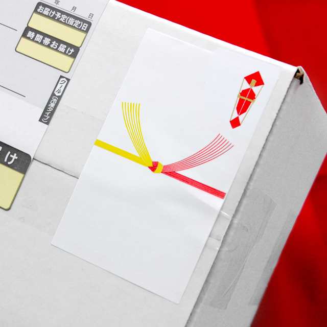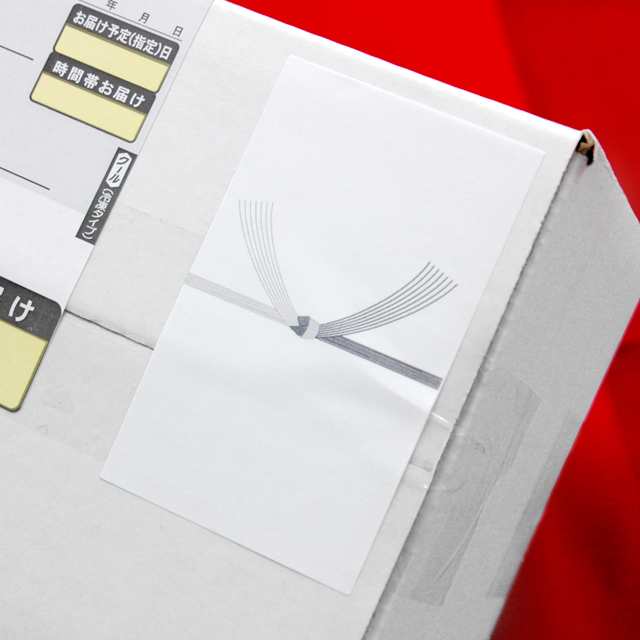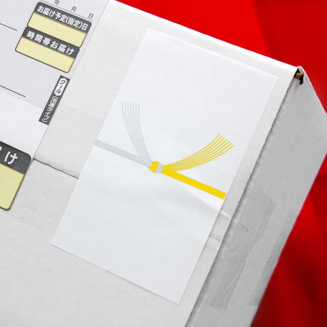 配送箱(梱包用箱)の角にお選びいただいた熨斗のシールを直接貼付させて頂きます。