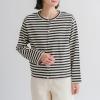 【即納】クルーネックボーダーカーディガン トップス 長袖 綿100% 羽織 冷房対策 春夏 新作