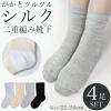靴下 レディース ソックス 4足セット シルク二重編み クルー丈 かかとつるつる 22-24cm