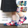 送料無料 靴下 レディース おしゃれ 10足セット 北欧デザイン ショート丈 ソックス 綿混 カラフル かわいい 花柄 ドット 水玉 鳥 個性的