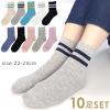 靴下 10足 セット レディース 綿混 ソックス 無地 ライン柄 クルー丈 おしゃれ カラー 黒 グレー 白 紺 ピンク ベージュ 22-24cm