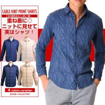【e220】 / シャツ メンズ ニットプリント 日本製 セータープリント Yシャツ チェックシャツ カッターシャツ 綿100% コットン100% きれ