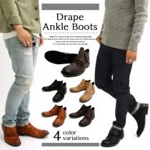 【e228】 / サイドジップ アンクルブーツ ショートブーツ ブーツ メンズ ドレープブーツ フェイクレザー