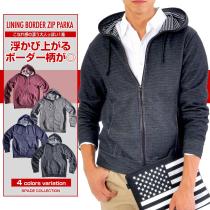 【e245】 / ジップパーカー メンズ パーカー ボーダー 長袖 裏毛 裏ボーダー ロールアップ スウェット 秋 秋服 コーデ 着こなし 無地 き