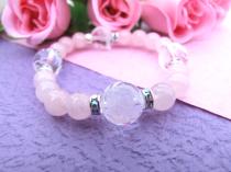 ローズクォーツ紅水晶 開運四神パワーストーンレディースブレスレットお守り(カット水晶)神社で祈願済み