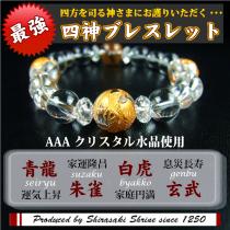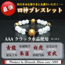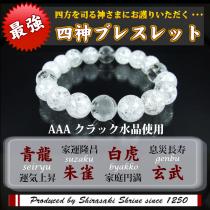 風水四神獣 クラック水晶 パワーストーンブレスレット 神社でお清め・お払い済み 内周19cm/高級桐箱付き/守護石/お守り/祈願済み