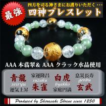 運気上昇風水四神水晶金手彫りレディースジェイド(翡翠)パワーストーンブレスレット神社で祈願済み