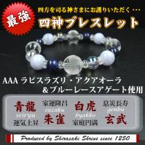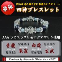 風水四神獣 ラピスラズリ&アクアマリン 内周16cm 高級桐箱付き 神社でお清め・お祓い済み パワーストーンブレスレット/守護石/お守り/