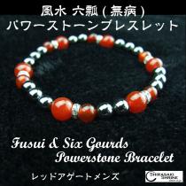 風水 無病(六瓢) 瓢箪ブレスレット 神社で祈願済み メンズ/赤めのう/仕事運・健康運/縁起物/パワーストーン