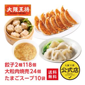 【大阪王将】餃子2種118個+大粒肉焼売24個+たまごスープ10袋セット