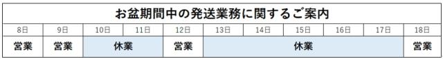 出荷業務、およびお問い合わせ業務は休業となります。ご了承ください