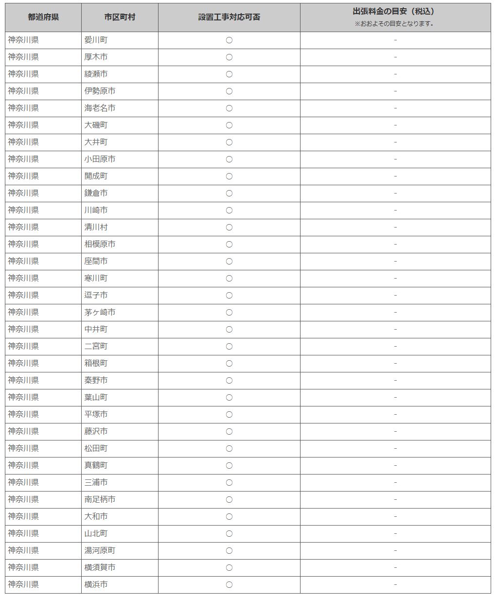 神奈川県 ※離島・山間部他 一部地域は工事エリア外となります。出張料がかかる地域がございます。