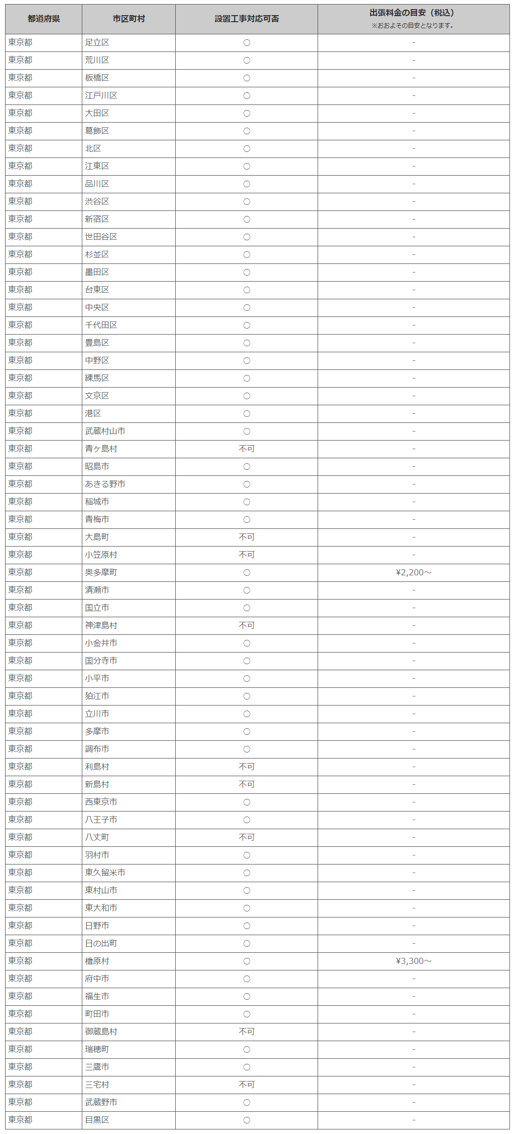 東京都 ※離島・山間部他 一部地域は工事エリア外となります。出張料がかかる地域がございます。