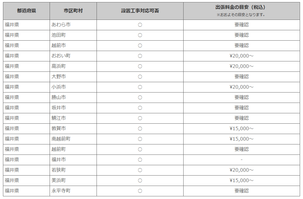 福井県 ※離島・山間部他 一部地域は工事エリア外となります。出張料がかかる地域がございます。
