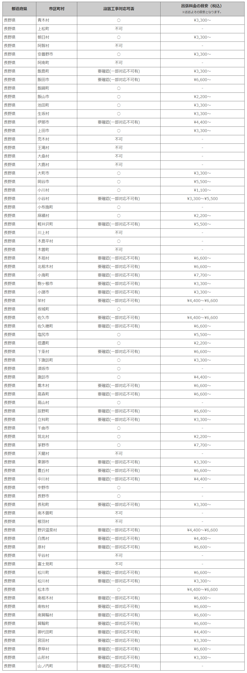 長野県 ※離島・山間部他 一部地域は工事エリア外となります。出張料がかかる地域がございます。
