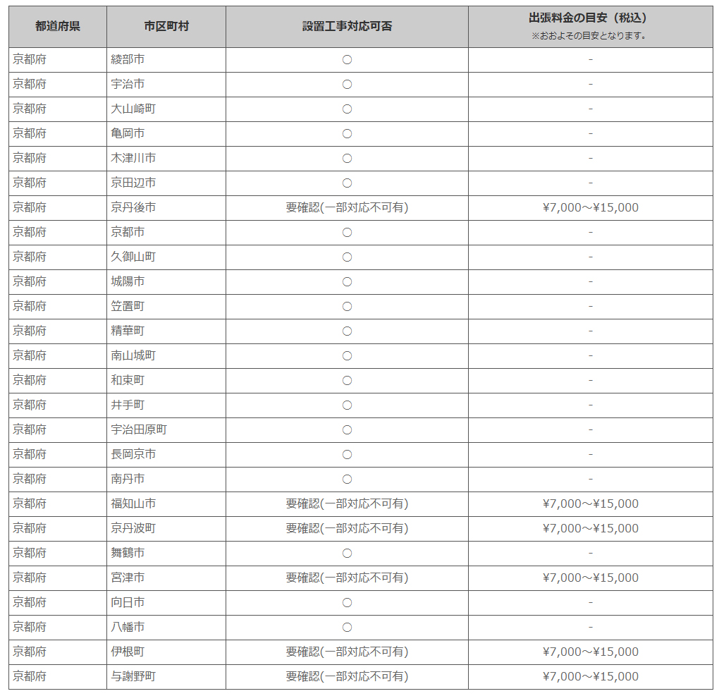 京都府 ※離島・山間部他 一部地域は工事エリア外となります。出張料がかかる地域がございます。