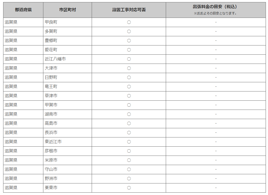 滋賀県 ※離島・山間部他 一部地域は工事エリア外となります。出張料がかかる地域がございます。