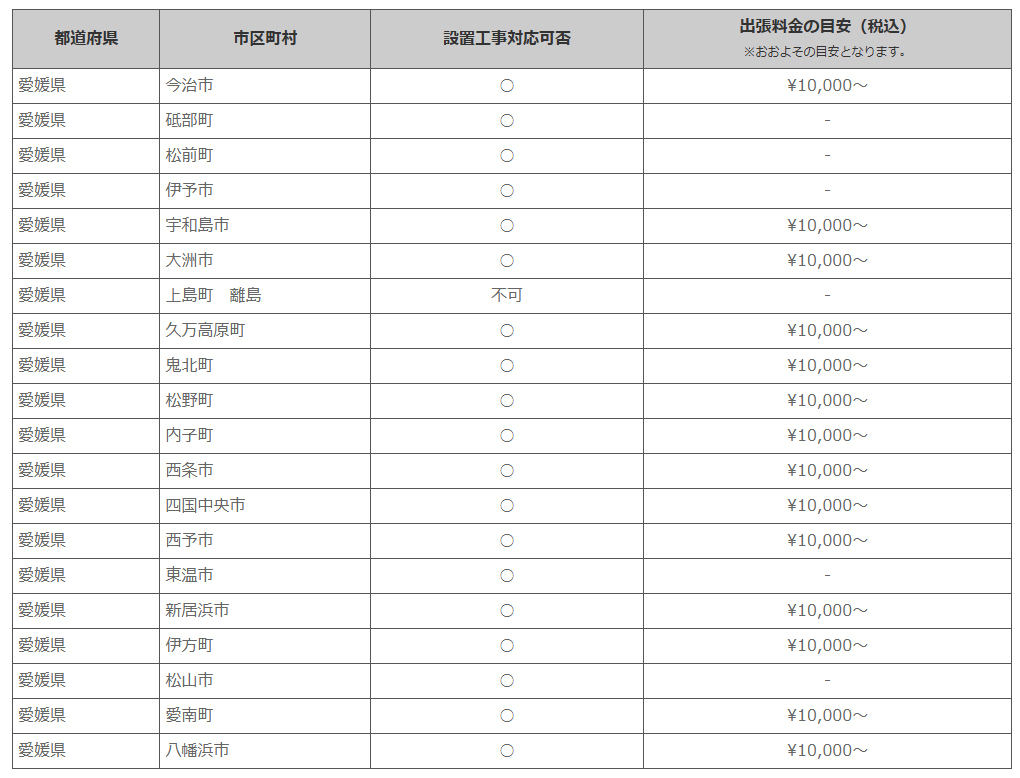 愛媛県 ※離島・山間部他 一部地域は工事エリア外となります。出張料がかかる地域がございます。