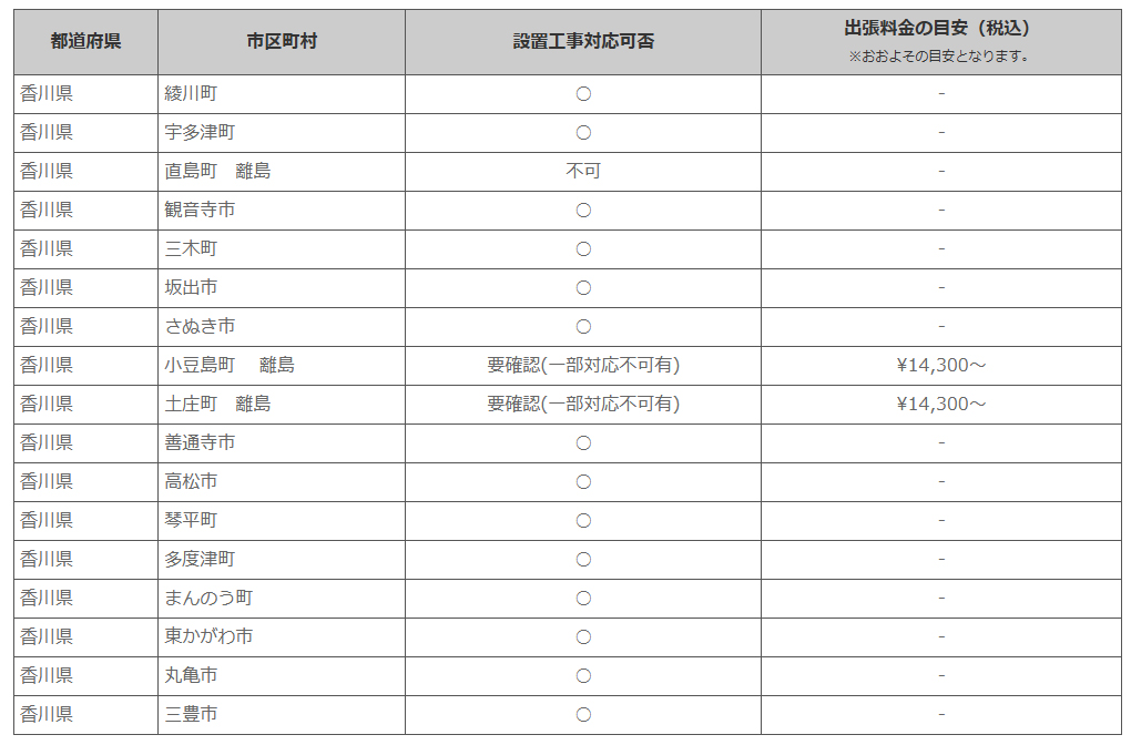 香川県 ※離島・山間部他 一部地域は工事エリア外となります。出張料がかかる地域がございます。