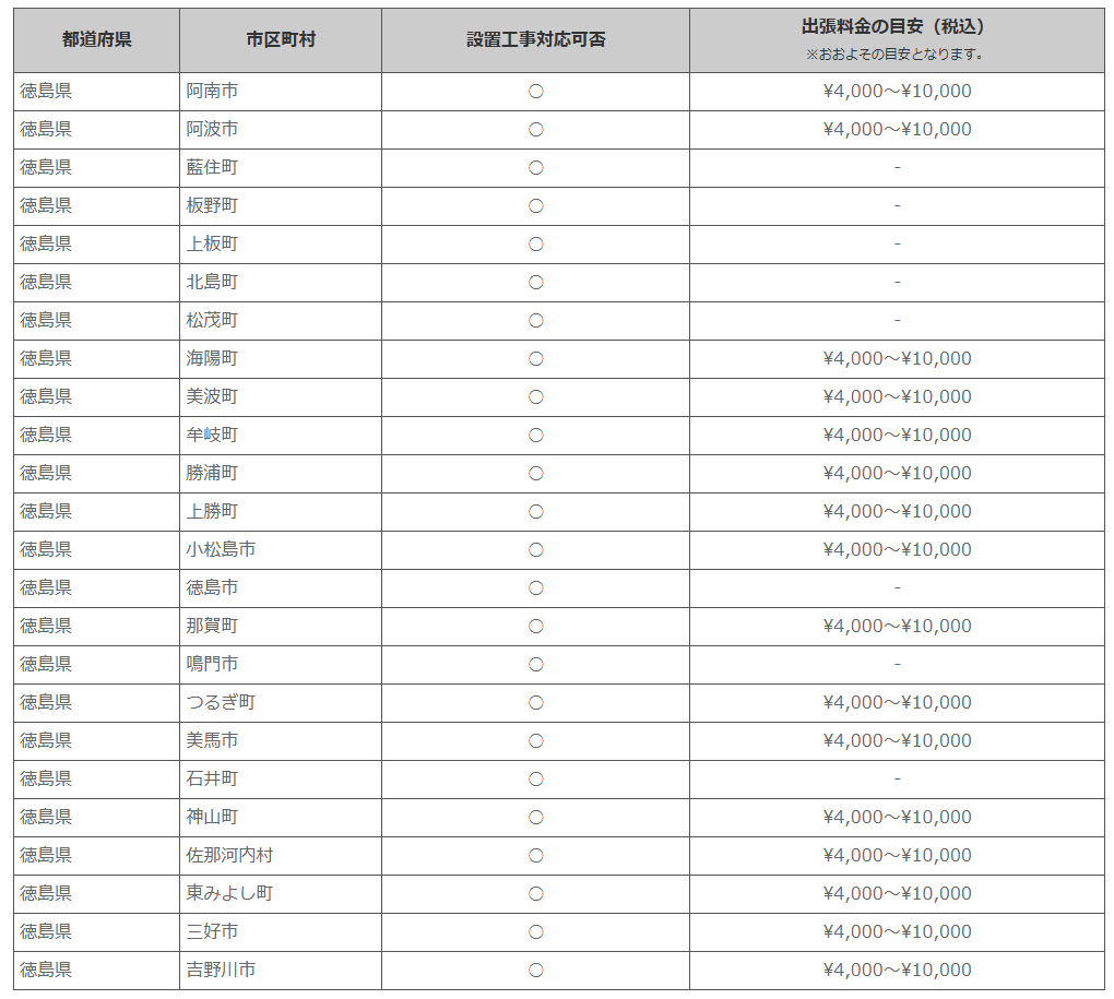 徳島県 ※離島・山間部他 一部地域は工事エリア外となります。出張料がかかる地域がございます。