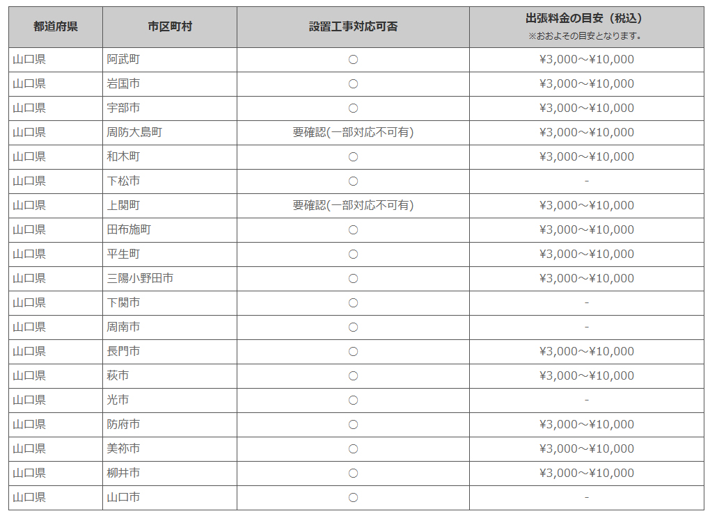 山口県 ※離島・山間部他 一部地域は工事エリア外となります。出張料がかかる地域がございます。