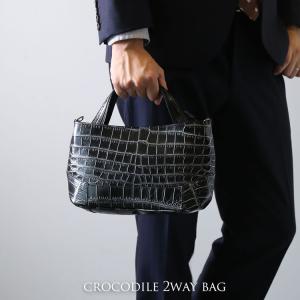 ヒマラヤ クロコダイル メンズ ミニ トートバッグ 2way バッグ 斜め掛け ショルダーバッグ(06001876-mens-1r)