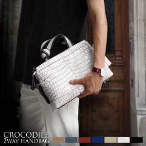 クロコダイル ミニトートバッグ メンズ 日本製 本革 ショルダー 2WAY ホワイト ベージュ グリーン ネイビー ブルー ブラック シルバー 紳