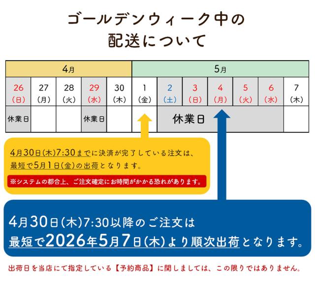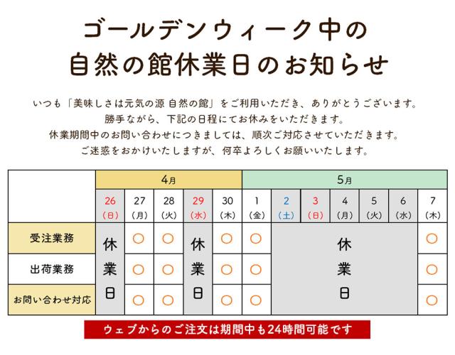 ゴールデンウィーク中の休業日のお知らせ