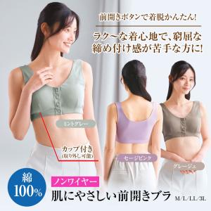 肌にやさしい前開きブラ フロントホック フロントオープン 下着 ブラジャー ノンワイヤー 綿混 肌にやさしい らくちん 通気性 ナイトブラ
