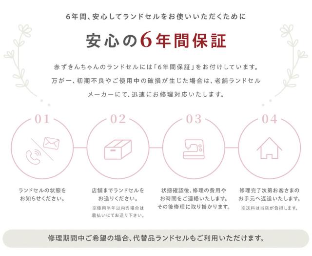 ※6年間保証の期間は、「お子様のご入学日(4月)から6年間」となります。
