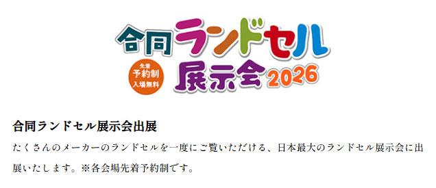 『合同ランドセル展示会』参加には事前予約が必要です。(先着予約制)
