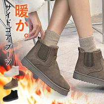 冬新作 サイドゴア ムートンブーツ ショート ファー フラット レディースシューズ (送料無料)^bo-748^ ●