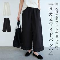 春新作 ボトムス レディース ワイドパンツ パンツ フリルパンツ 裾フリル 9分丈 ウエストゴム ポケット カジュアル 春 夏[郵2]^b501^ ★
