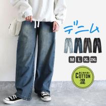 春新作 デニム ジーンズ パンツ ワイドパンツ レディース 春 夏 黒 おしゃれ ストレート ウエストゴム 大きいサイズ ロング イージーパン