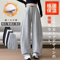 冬新作 パンツ カーブパンツ 裏起毛 スウェットパンツ レディース ハイウエスト ワイドレッグ 秋 冬 黒 白 大きいサイズ あったか 保温 [