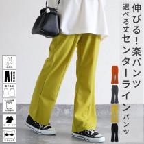 春新作 パンツ レディース セミフレア ボトムス 選べる丈 脚長効果 センターライン ウエストゴム 楽ちん シワになりにくい 高身長 低身長