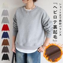 冬新作 トップス レディース トレーナー 秋 冬 白 黒 おしゃれ 長袖 スウェット Uネック ショート丈 リブ 裏起毛 暖か 極暖[郵3]^t1121^