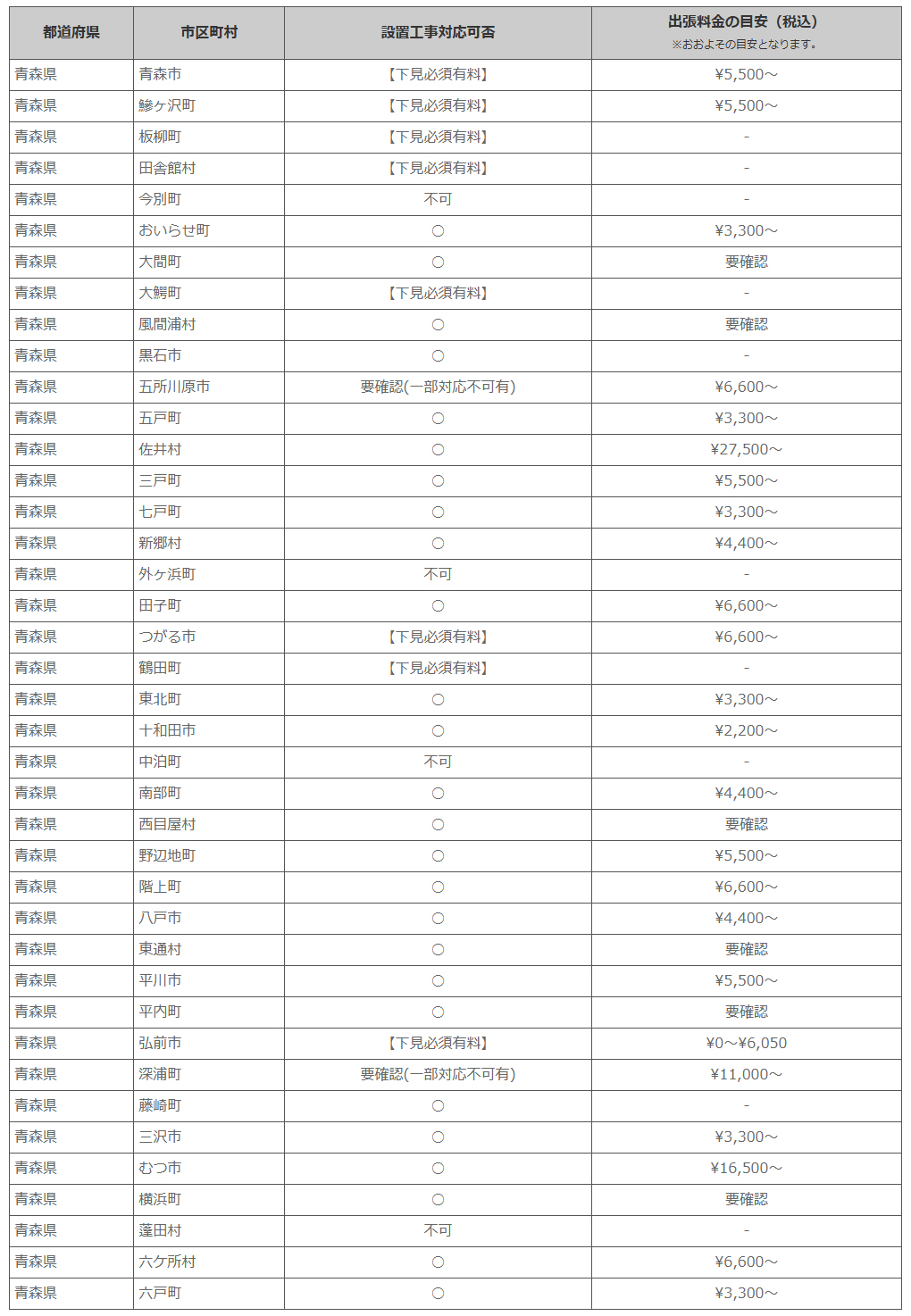 青森県 ※離島・山間部他 一部地域は工事エリア外となります。出張料がかかる地域がございます。