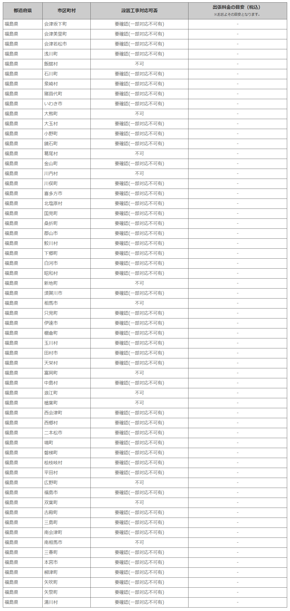 福島県 ※離島・山間部他 一部地域は工事エリア外となります。出張料がかかる地域がございます。