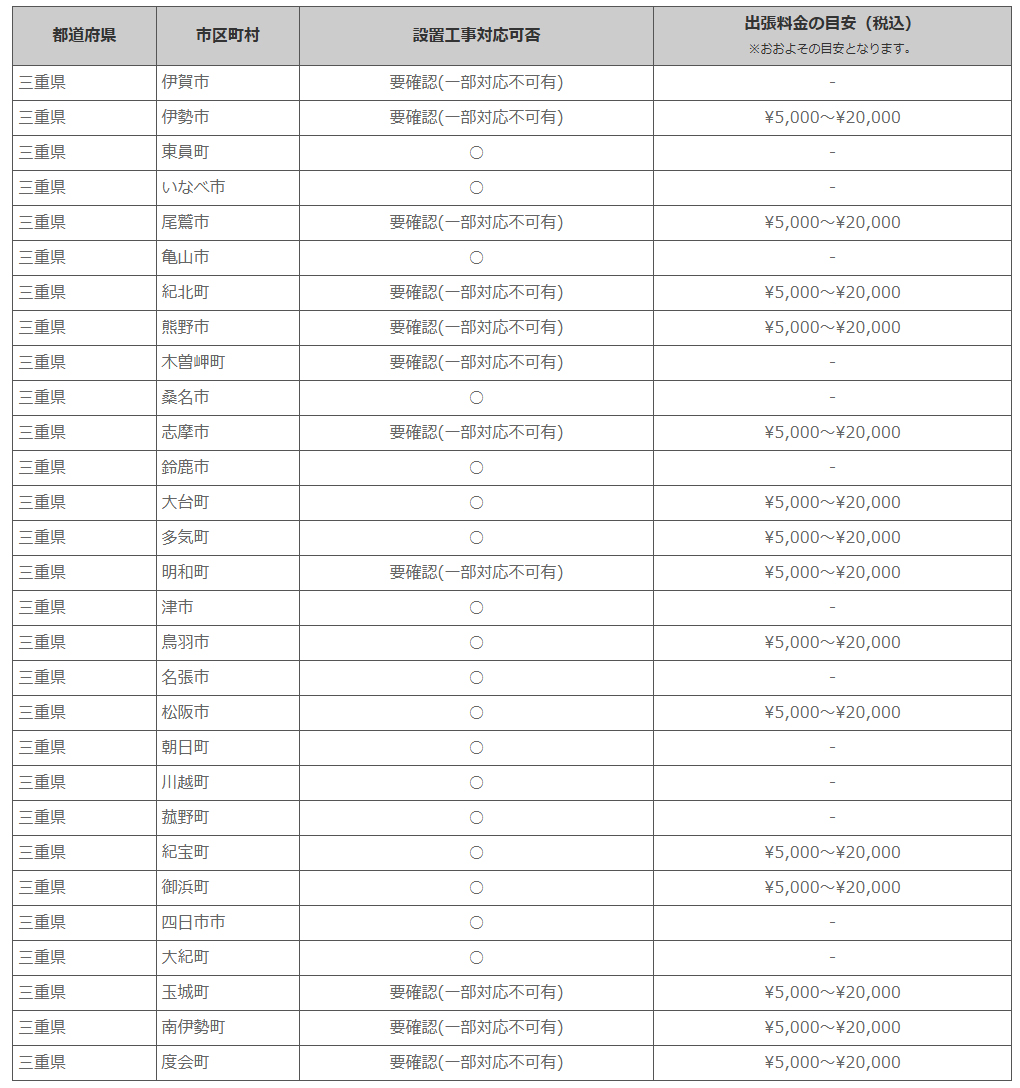 三重県 ※離島・山間部他 一部地域は工事エリア外となります。出張料がかかる地域がございます。