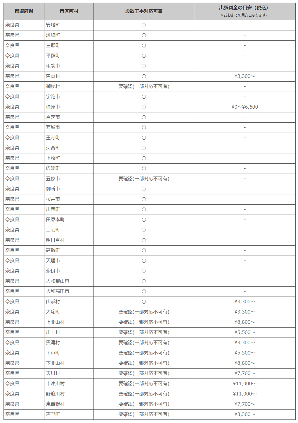 奈良県 ※離島・山間部他 一部地域は工事エリア外となります。出張料がかかる地域がございます。