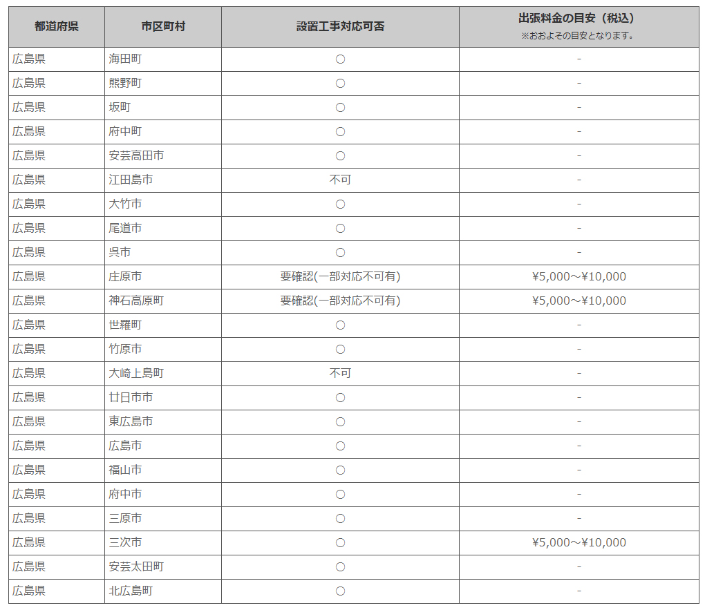 広島県 ※離島・山間部他 一部地域は工事エリア外となります。出張料がかかる地域がございます。
