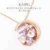 ピンク アメジスト ローズクォーツ ネックレス K10PG ピンク ゴールド 三日月 クローバー