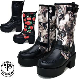 ☆セール☆YOSUKE U.S.A エンジニア厚底ブーツ 猫 犬 イチゴ 柄 2600784